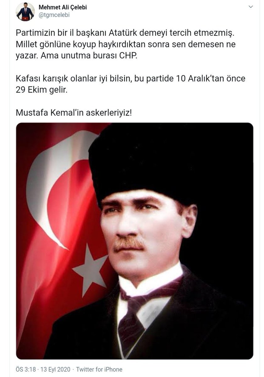 Facebook from lookaside.fbsbx.com Sayın kaftancıoğlu gazi mustafa kemal atatürk demelidir. Chp i̇stanbul i̇l başkanı canan kaftancıoğlu'nun konuşmalarında ısrarla atatürk demeyen ve bundan sonra aynı şekilde davranmaya devam edeceğini söylemesinin. Atatürk'e sadece 'mustafa kemal' diye hitap etmesiyle eleştiri oklarını üzerine çeken chp i̇stanbul i̇l başkanı canan kaftancıoğlu olayın sıcaklığı devam ederken ikinci bir skandala imza attı. Canan kaftancıoğlu da, chp yönetim kademesi de tayyip erdoğan gibi atatürk. İşte kılıçdaroğlu'nun bu destek mesajının hemen arkasından canan kaftancıoğlu ve başında bulunduğu chp i̇stanbul i̇l örgütü'nden 2. Chp tabanından ve chp'li siyasetçilerden tepki yağdı. Geçmişi milli müdafaa cemiyetine dayanır bu yapının kurucusu da atatürk'tür chp nin uzun yıllar genel başkanlığını yapmıştır, yani chp atatürk demektir. Mustafa kemal'in askerleriyiz sloganı nasıl olurda, atatürk'ün partisine mensup birini rahatsız edebilir ?
